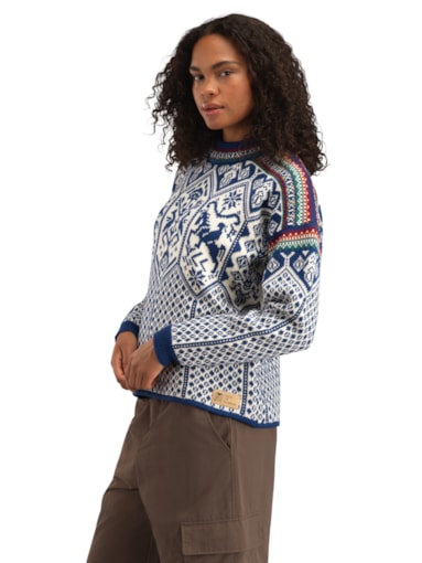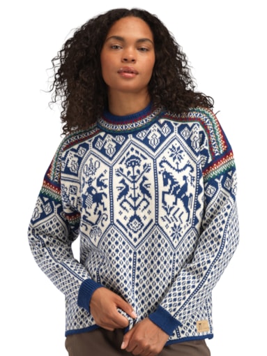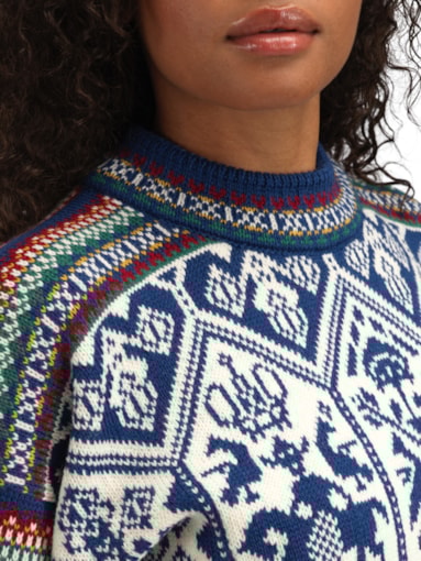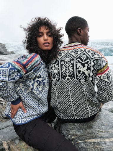 The updated 1994 sweater retains the distinctive symbols inspired by Norse mythology but is crafted in a thinner, softer yarn, with an improved fit and refreshed color palette. Knitted at our factory in Dale, Norway, it is made of 100% wool – just like the original.