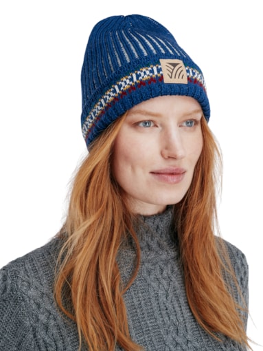• A rib-knit hat with a contrasting two-tone design and a double-knit construction. The detailed border around the fold-up hem is inspired by our greatest success ever: our original 1994 Lillehammer Olympic sweater.