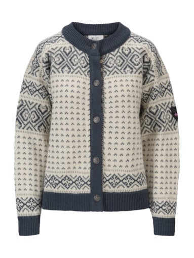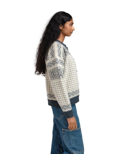 • The Hannah cardigan is an elegant button-down knit that combines vintage heritage with modern flair. Featuring exposed buttons on the ribbed placket and a relaxed fit with a T-sleeve insert, this cardigan is effortlessly stylish and comfortable. Heavily inspired by a cardigan first introduced in 1978, its design has been lovingly brought back to our Dale universe, capturing the essence of timeless fashion with a nod to our origins. Finished with Norwegian-made pewter buttons, each detail celebrates authentic craftsmanship and the rich history of Dale of Norway.
