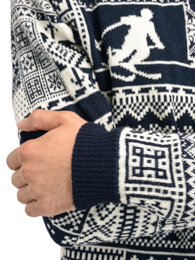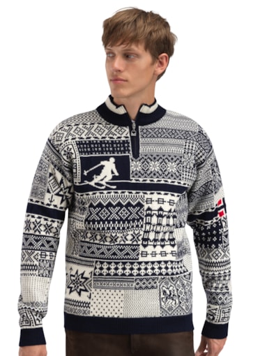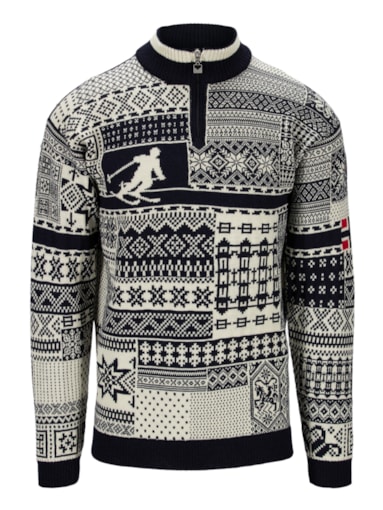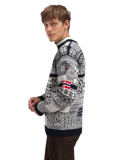 Ever since 1956 we have made official Olympic team sweaters for the National Norwegian Cross-Country ski team. This sweater is a tribute to our Norwegian Olympic history, with a pattern based on all our 18 official team sweaters.