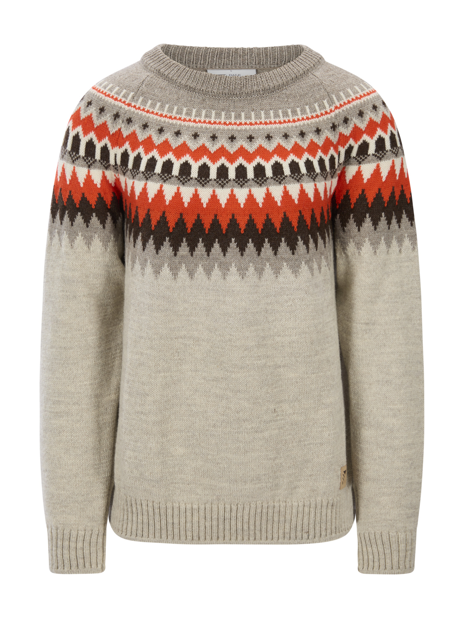 • The Losna is a warm, chunky knit pullover crafted from 100% lightweight wool. Its relaxed silhouette is paired with a distinctive zigzag pattern and a refined crew-neck insert, creating a sweater that feels both textured and balanced. Soft yet substantial, this wool sweater offers comfortable warmth and a balanced feel.
