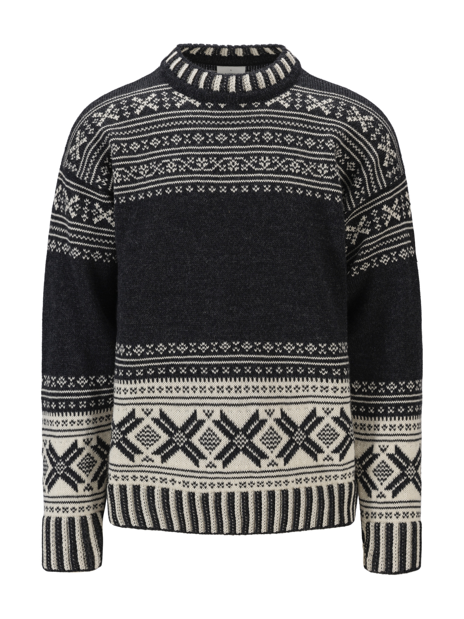 • The Torridal sweater seamlessly blends heritage with contemporary style, featuring a striking stripe and rib effect at the neckline, cuffs, and bottom hem. Designed for a comfortable and relaxed fit, the Torridal showcases beautiful patterns concentrated in the yoke and hemline, creating a visually appealing and distinct look. Crafted from authentic Norwegian wool, the Torridal sweater is inspired by our traditional Setesdal garments, offering a modern update that honors the rich history of the iconic “Lusekofta.” By omitting the traditional lice pattern, Torridal takes on a fresh identity, making it a versatile piece for everyday wear.