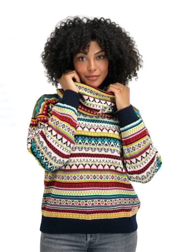 • A playful, detailed and fully patterned tubular scarf with rib knit edging. Utsira is knitted in 100% long-lasting wool. The pattern is a mix of historical Dale patterns.